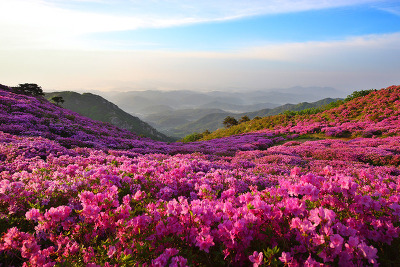 황매산에서는 해마다 5월이면 철쭉 군락지가 능선을 뒤덮을 정도로 장관을 이룹니다.